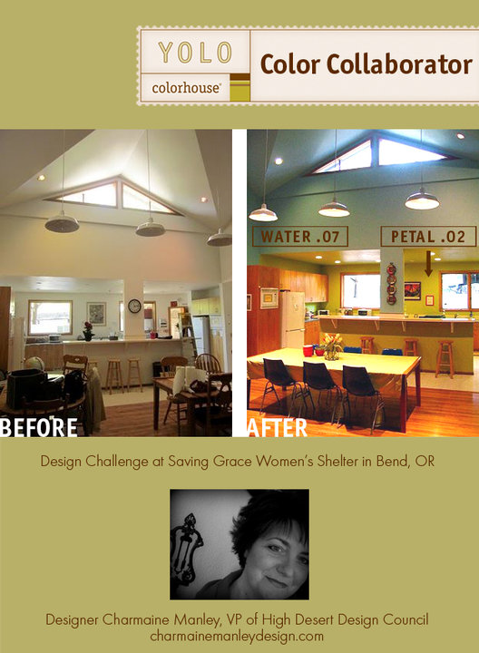 I just finished a charity design project full of collaborators. The High Desert Design Council, specifically Mindy Lyman & Martha Murray, plus a handful of wonderfully talented volunteers and generous business owners, transformed the great room/kitchen of a women's and children's shelter.